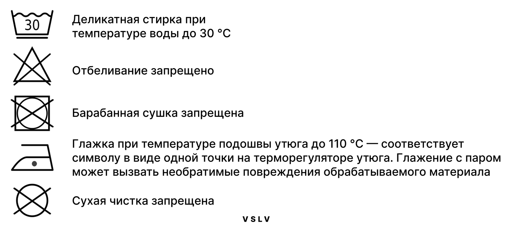 Изделия из трикотажного полотна требуют особого ухода. Рекомендуется стирать вручную без трения и скручивания. Альтернативный способ — машинная стирка в деликатном режиме с минимальными оборотами. Температурный режим для стирки: 30°. Повторное полоскание также следует проводить при температуре 30°, чтобы избежать усадки изделий. Важно стирать вещи разных цветов отдельно. Не используйте отбеливатели. Для сушки лучше всего раскладывать изделия горизонтально. Гладить можно утюгом или отпаривателем при температуре до 110 °C. Движение утюгом следует осуществлять в направлении вязания полотна. Хранить трикотажные вещи рекомендуется на полке в сложенном виде.